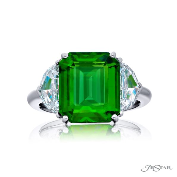 Breathtaking Radiance: Our elegant 5.48 ct. CDC certified Emerald Ring. This beautiful emerald-cut emerald flanked by two epaulet diamonds is handcrafted in pure platinum.