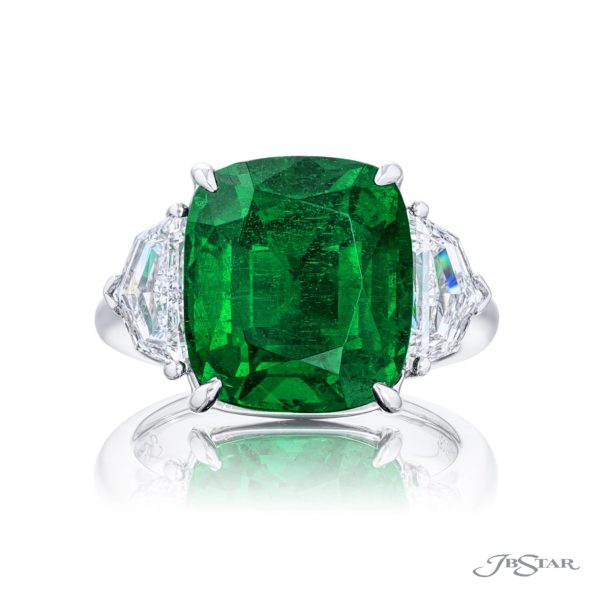 Breathtaking Radiance: Our exquisite 9.00 ct certified Emerald Ring. This beautiful vivid emerald-cut emerald embraced by epaulet diamonds is handcrafted in pure platinum.