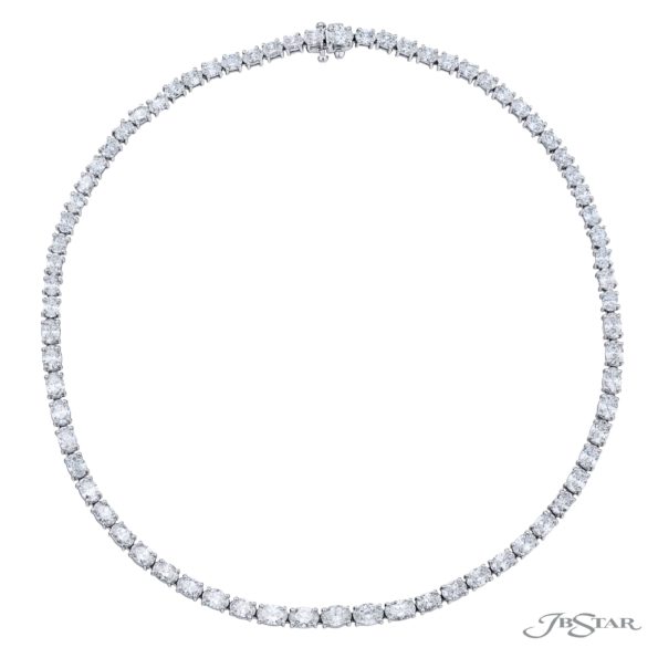 One-of-a-Kind Beauty: Our stunning 22.83 ctw. Diamond Necklace. These dazzling oval diamonds are set within shared prongs and handcrafted in pure platinum.
