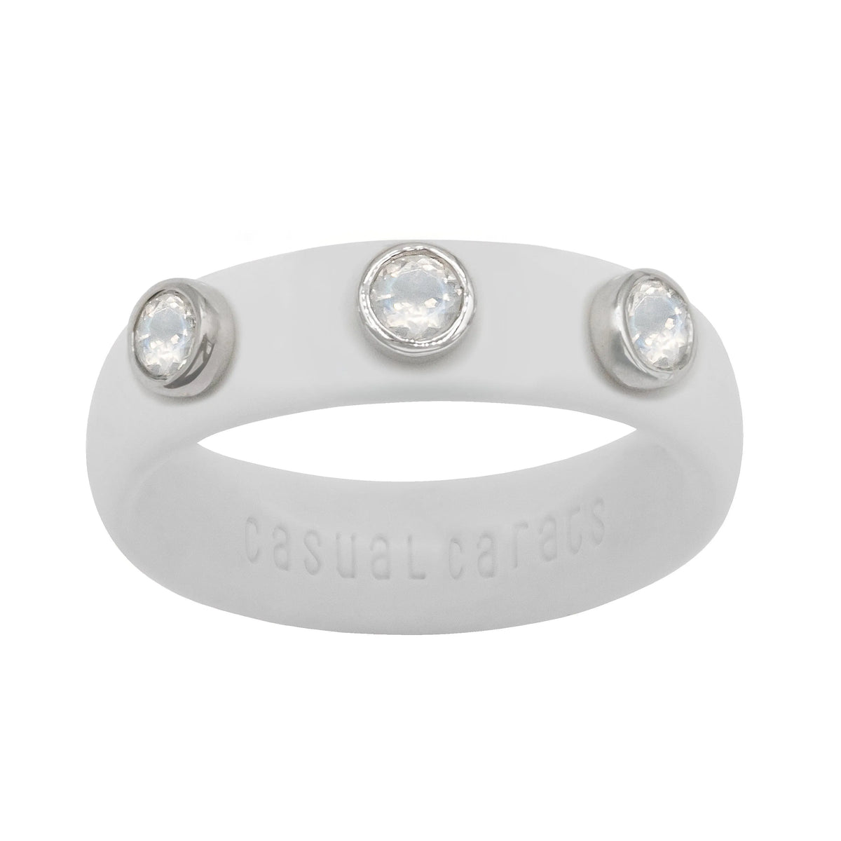 3 Stone Faceted Rainbow Moonstone Silicone Ring
