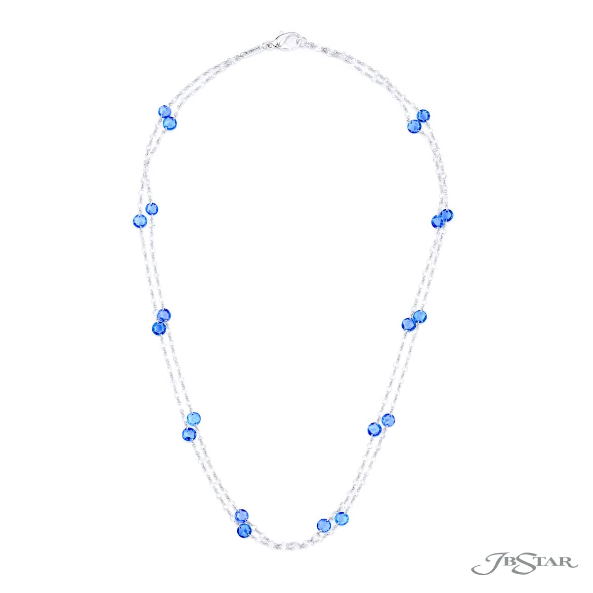 One-of-a-Kind Beauty: Our stunning sapphire and diamond necklace featuring 22 certified round Sri Lankan sapphires weighing a total of 41.71 ct complemented by round diamonds. Handcrafted in pure platinum.
