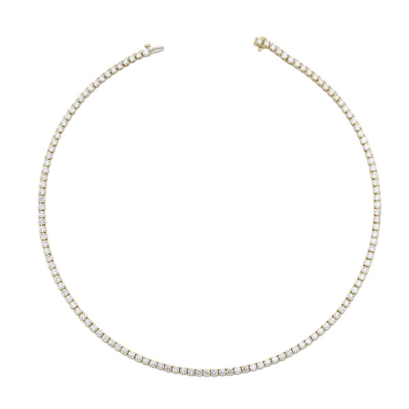 One-of-a-kind Beauty: Our stunning 16.56 ctw. Diamond Necklace. These one hundred seventeen stunning round diamonds are handcrafted in 18KY gold.
