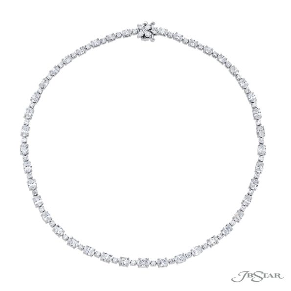 One-of-a-kind Beauty: Our stunning Diamond Necklace. These stunning oval and round diamonds in an alternating design are handcrafted in pure platinum.