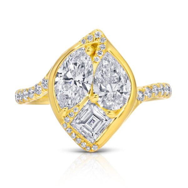 / Asscher, Marquise, and Pear Cut Diamond Three Stone Ring