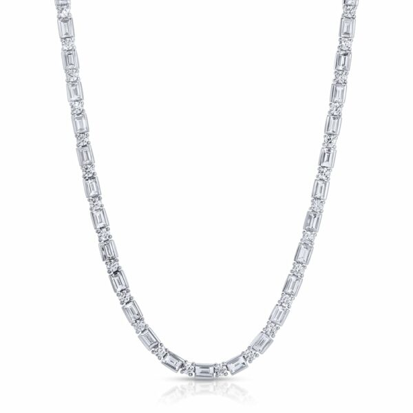 / Baguette and Round Cut Diamond Tennis Necklace – 13.22 ct.