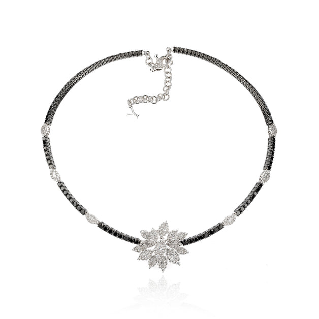 YEPREM choker necklace adorned with a combination of round, marquise and black diamonds boasting exceptional clarity of VVS and VS, as well as a striking F-G color. Round Diamond: 2.31 ct Marquise Diamond: 2.54 ct Black Diamond: 6.83 ct Stone Quantity: 345 Total Weight: 37.86 g