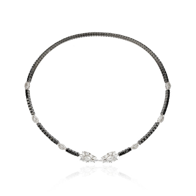 YEPREM choker necklace adorned with a combination of round, marquise and black diamonds boasting exceptional clarity of VVS and VS, as well as a striking F-G color. Round Diamond: 0.66 ct Marquise Diamond: 1.95 ct Black Diamond: 6.90 ct Stone Quantity: 216 Total Weight: 31.04 g
