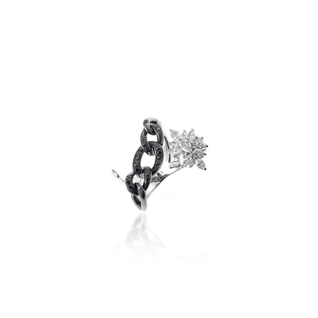 YEPREM stackable ring adorned with a combination of round, marquise, pear and black diamonds boasting exceptional clarity of VVS and VS, as well as a striking F-G color. Round Diamond: 0.03 ct Marquise Diamond: 0.51 ct Pear Diamond: 0.22 ct Black Diamond: 0.23 ct Stone Quantity: 35 Total Weight: 9.73 g The size can be adjusted to perfectly fit any finger. Kindly contact us to meet your inquiries.