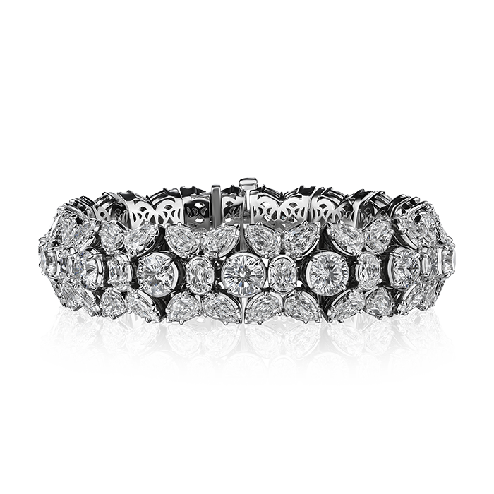 Christopher Designs bracelet with 16 Crisscut® Round diamonds 11.78cttw D-F VSSI, 16 L’Amour Crisscut® Oval diamonds 3.46cttw, and 64 L’Amour Crisscut® Pear diamonds 16.98cttw EVS, set in 18K White Gold.