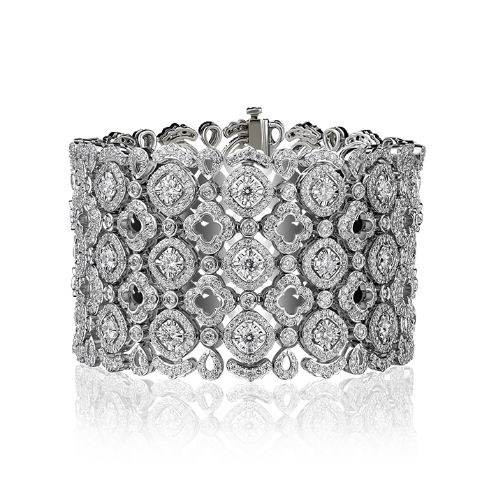 Christopher Designs bracelet with 42 Crisscut® Round diamonds 6.96cttw ESI2 and additional brilliant round diamonds 14.00cttw ESI, set in 18K White Gold.