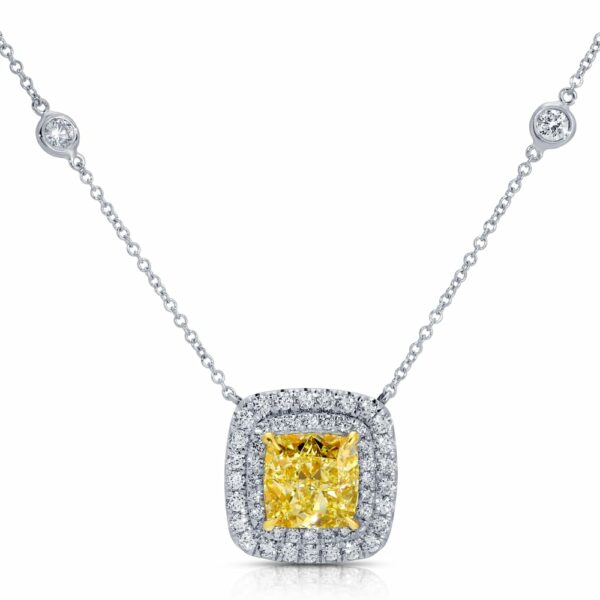 Cushion Cut Fancy Yellow Diamond Halo Pendant