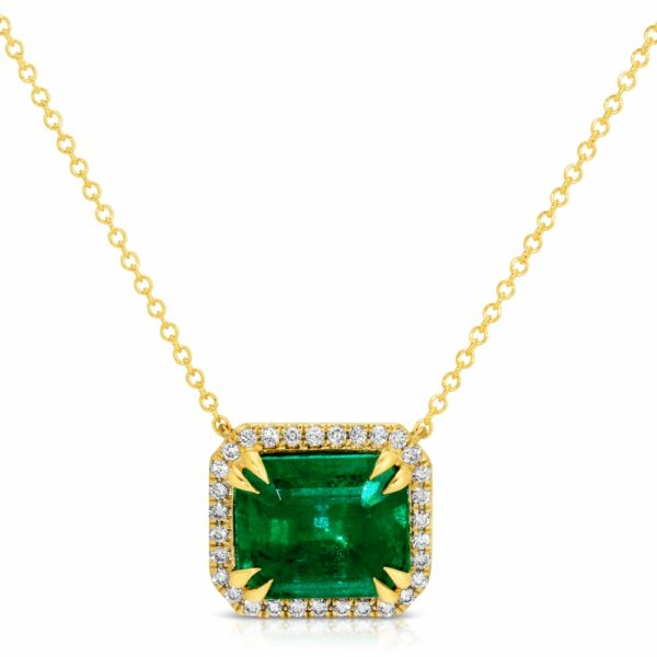 / Emerald Cut Green Emerald and Diamond Pendant