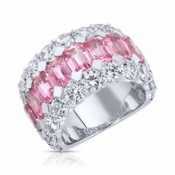 Emerald Cut Pink Sapphire and Diamond Band Ring