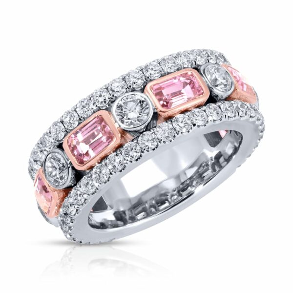 Emerald Cut Pink Sapphire and Round Diamond Band Ring
