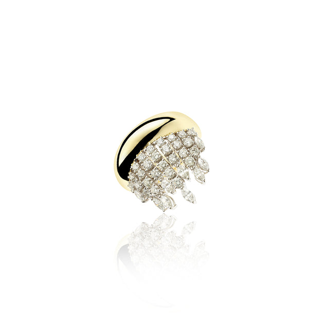 YEPREM stackable ring adorned with a combination of round and marquise diamonds boasting exceptional clarity of VVS and VS, as well as a striking F-G color. Round Diamond: 0.92 ct Marquise Diamond: 0.57 ct Stone Quantity: 36 Total Weight: 12.79 g The size can be adjusted to perfectly fit any finger. Kindly contact us to meet your inquiries.
