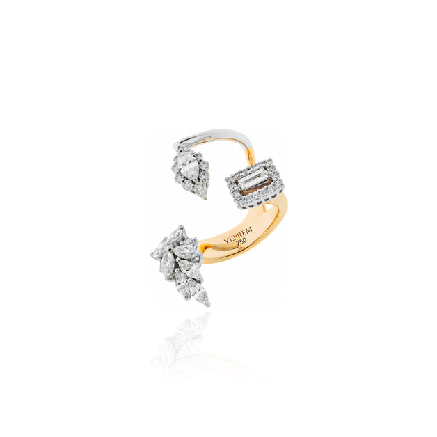 YEPREM stackable ring adorned with a combination of round, baguette and marquise diamonds boasting exceptional clarity of VVS and VS, as well as a striking F-G color. Round Diamond: 0.40 ct Marquise Diamond: 0.89 ct Baguette Diamond: 0.09 ct Stone Quantity: 38 Total Weight: 8.57 g The size can be adjusted to perfectly fit any finger. Kindly contact us to meet your inquiries.
