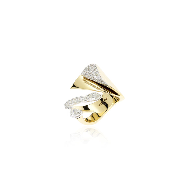 YEPREM stackable ring adorned with a combination of round and pear diamonds boasting exceptional clarity of VVS and VS. Round Diamond: 0.75 ct Pear Diamond: 0.45 ct Stone Quantity: 36 Total Weight: 17.17 g The size can be adjusted to perfectly fit any finger. Kindly contact us to meet your inquiries.