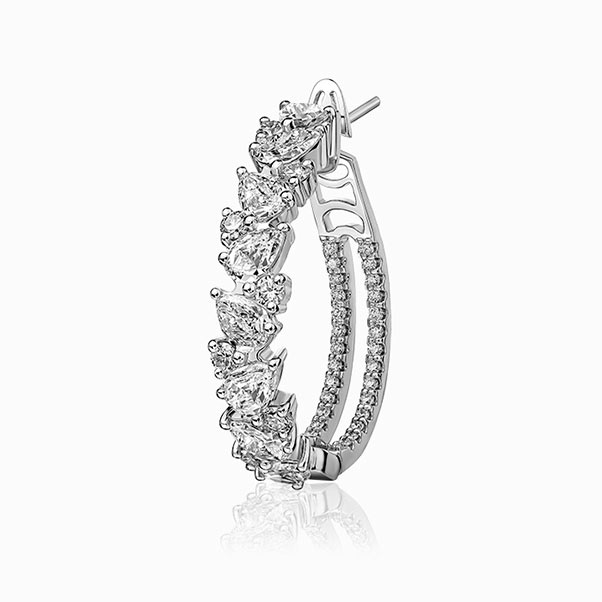 Christopher Designs hoop earrings featuring 16 L’Amour Crisscut® Pear-Shape diamonds 3.20cttw, 14 Crisscut® Round diamonds 0.57cttw GVS, and by 58 brilliant round diamonds 0.40cttw GSI.