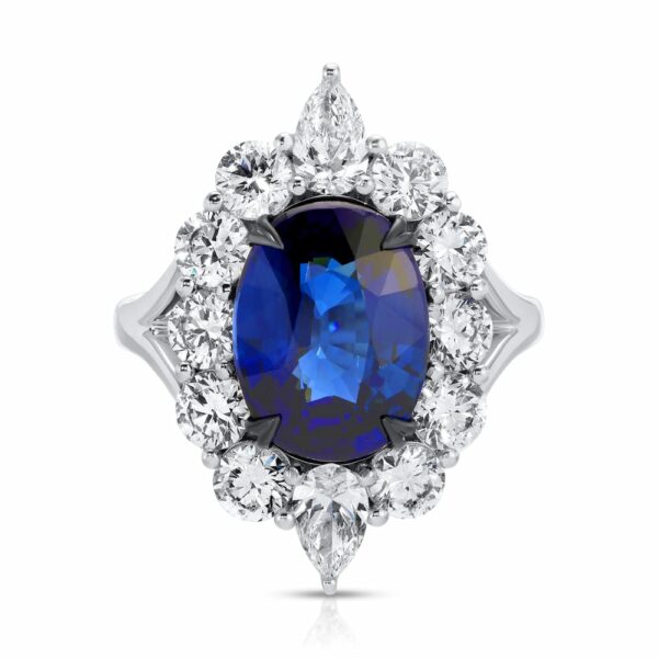 Oval Cut Blue Sapphire and Diamond Ring