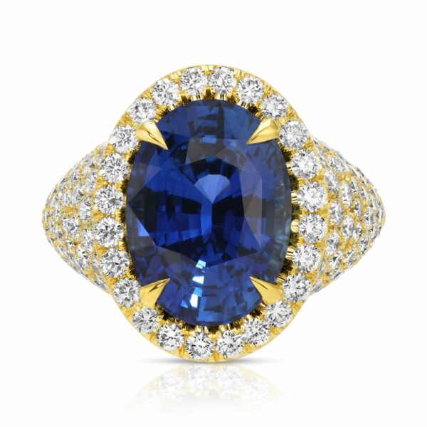 Oval Cut Blue Sapphire and Pave Diamond Ring