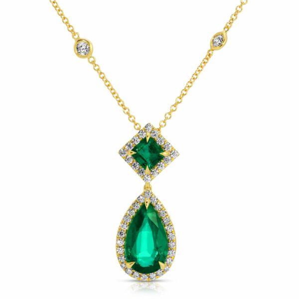 / Pear Shape and Asscher Cut Green Emerald and Diamond Pendant