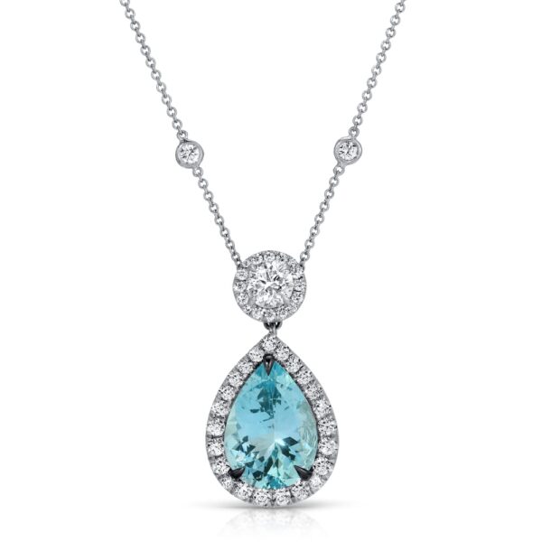 / Pear Shape Aquamarine and Round Diamond Pendant