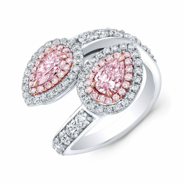 Pear Shape Pink Diamond Bypass Halo Ring