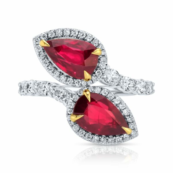 Pear Shape Ruby and Oval Diamond Bypass Ring