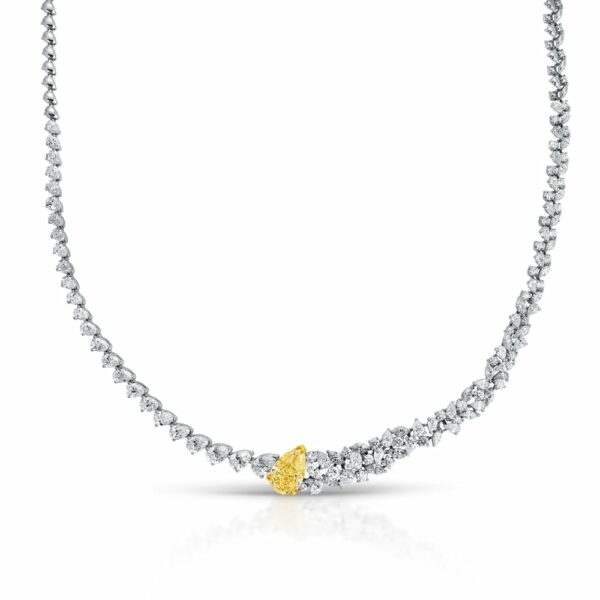 Pear Shape Yellow Diamond and Mix Cut Necklace