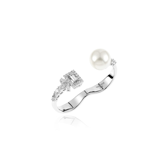 YEPREM statement ring adorned with a combination of round, pear and baguette diamonds boasting exceptional clarity of VVS and VS, as well as a striking F-G color, perfectly accentuating the pearl. Round Diamond: 0.61 ct Pear Diamond: 0.32 ct Baguette Diamond: 0.11 ct Pearl: 1 Stone Quantity: 26 Total Weight: 11.05 g The size can be adjusted to perfectly fit any finger. Kindly contact us to meet your inquiries.