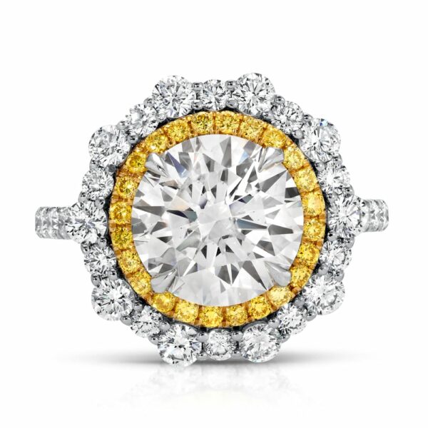 Round Cut Diamond with Fancy Yellow and White Diamond Halo Ring