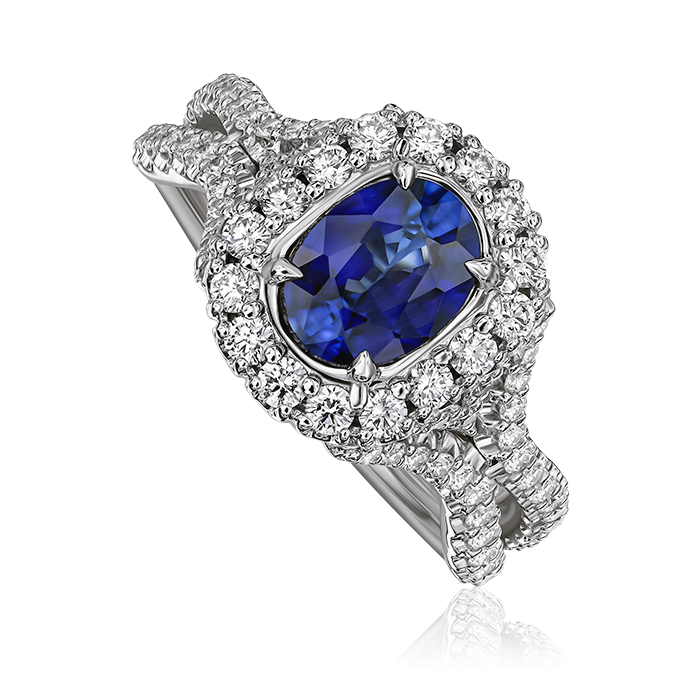 Christopher Designs ring featuring a sapphire gemstone center 1.46ct and round diamonds 0.85cttw GSI.