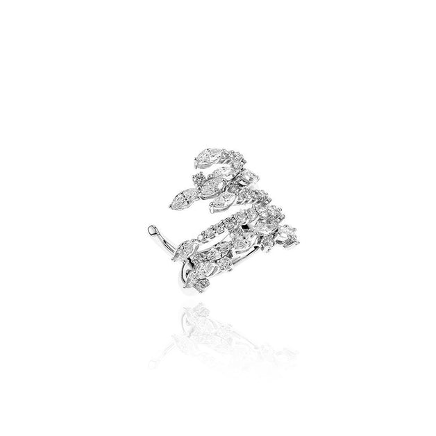 YEPREM stackable ring adorned with a combination of round and marquise diamonds boasting exceptional clarity of VVS and VS, as well as a striking F-G color. Round Diamond: 0.89 ct Marquise Diamond: 1.71 ct Stone Quantity: 43 Total Weight: 11.45 g The size can be adjusted to perfectly fit any finger. Kindly contact us to meet your inquiries.