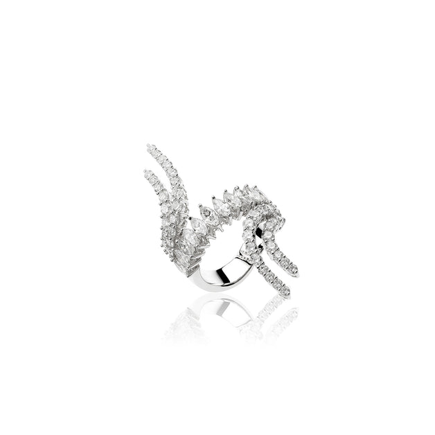 YEPREM stackable ring adorned with a combination of round and marquise diamonds boasting exceptional clarity of VVS and VS, as well as a striking F-G color. Round Diamond: 1.85 ct Marquise Diamond: 1.28 ct Stone Quantity: 51 Total Weight: 13.75 g The size can be adjusted to perfectly fit any finger. Kindly contact us to meet your inquiries.
